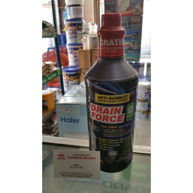 harga di atas belum termasuk ongkir.pembelian di layani dengan Grab , Gojek dan JNE0878.11.06.1993 WATB.SUMBER REJEKIAnti Sumbat DRAIN FORCE / Soda Api Cair 1800grAmpuh melarutkan sumbatan akibat: lemak, endapan sabun, tisu toilet, punting rokok, kertas, sisa makanan, minyak, rambut, kapas, kain perca, kerak kapur, pembalut, dsb Larutan konsentrat cair untuk melancarkan kembali saluran pembuangan tersumbat di pembuangan bak cuci piring atau bak mandi dan shower. Membantu menetralisir alkali akibat sabun dan deterjen. Untuk digunakan pada toilet, bak cuci piring, pancuran air, urinal, dan semua saluran pembuangan diameter max 4 inci.CARA PEMAKAIAN :Gunakan sarung tangan, pelindung mata dan disarankan memakai masker untuk bau tidak sedap yang ditimbulkan oleh produk ini. Biarkan ventilasi terbuka. Jangan gunakan plunger/karet pengisap selama pengerjaan. Hindari kontak cairan DRAIN FORCE dengan aluminium, logam galvanis dan keramik, bila tertumpah siram dengan air yang banyak.Untuk Saluran Tersumbat Total: Buang semua air tergenang di atas saluran. Tuang secara perlahan Drain Force sesuai anjuran pemakaian ke dalam lubang saluran. Diamkan selama 10-15 menit (untuk aplikasi septic tank dan sumbatan yang lama/tebal, relatif memerlukan waktu lebih lama), lalu perlahan siram dengan air. Apabila saluran masih mampet, ulangi prosedur seperti di atas lagi. Formula DRAIN FORCE lebih berat daripada air, walaupun ada genangan air di dalam pipa, DRAIN FORCE akan menerobos ke bagian pipa yang tersumbat dan bekerja.Untuk Sumbatan Ringan (Lambat): Tuang perlahan Drain Force sesuai anjuran pemakaian dan diamkan selama 5 menit, lalu perlahan siram dengan air. Ulangi jika perlu. Siram/flush dengan air. barang tersedia boss , langsung dipesan , akan segera kami p