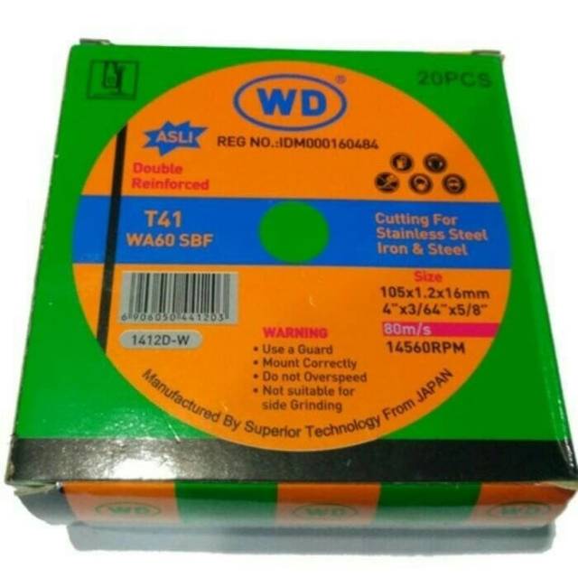 Produk Batu Potong Wd 4inch Grinda Potong Cutting Whell Wd 4inch sudah tiba hari ini . Belum dicek & tampaknya pantas ama yang ada di keterangan .