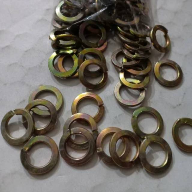 Ring per / spring washer Ukuran m10 ( bait kunci 14 )Warna kuningHarga 1pak@ 100pcs R