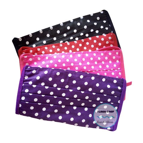 -- PRODUSEN MASKER KAIN TERMURAH DAN BERKUALITAS -- Kami menjual masker kain termurah dengan kualitas bahan, jahitan dan lipatan yang terbaik.Kami menyediakan variasi masker kain setengah lusinan (6pcs) dengan bebas pilih warna menggunakan tali sambungMasker Sudah Termasuk kemasan Plastik Pembungkus senilai Rp 250Pembayaran / Transfer maksimal jam 15.00 WIB (jam 3 sore), setelahnya pesanan akan dikirim hari berikutnyaHari minggu = Libur pengirimanBebas Pilih WarnaDan apabila order tidak mencantumkan warna maka akan kami kirim RandomBahan Masker kain Oxford super bisa di cuci sampai dengan 25x ukuran 18.5 x 9 cm panjang tali 40 CmBahan nyaman digunakan tidak pengapStock warna masker1. polka pink2. polka purple3. polka black4. polka red5. polka dongker6. polka orange7. polka tosca8. polka maroon9. polka blueTolong Order Sesuai Warna Yang Ada List iniORDER = SETUJU!#maskerkain#maskerkainmurah#maskerkesehatan#maskerhijab#maskeroxford#maskerkainkatun#maskerkaintali #maskerkainkaret #maskerkaintalisambung #maskerkaintalilepas #maskertalitelinga #maskerkainhijab #maskerkainhijabins