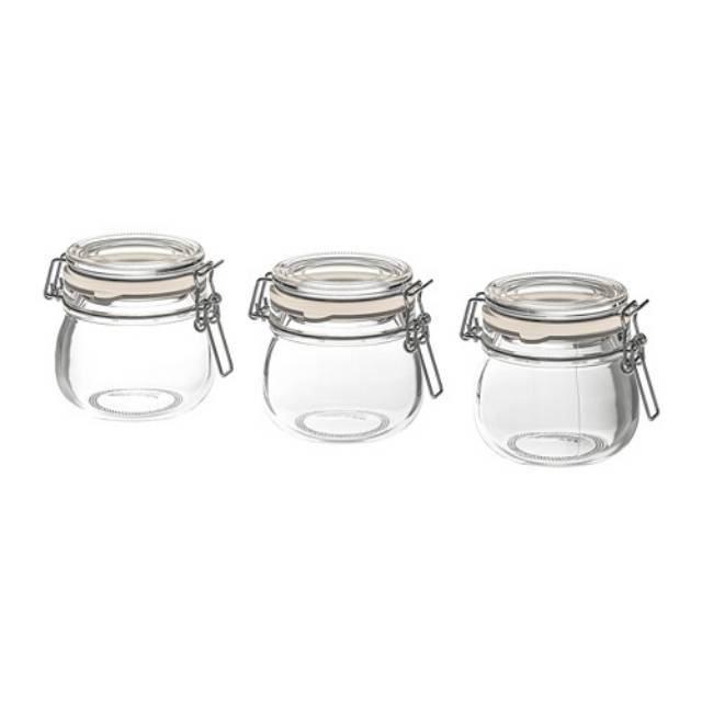 RR Home DesignREADY: Bening Polos, dan Motif BungaTOLONG TULS DICATATAN UNTUK MOTIFNYASUDAH TERJUAL BANYAK, PRODUK SEBELUMNYA TERHAPUS OLEH SISTEMStoples kedap udara sehingga cocok untuk menyimpan bumbu dapur atau selai.Penutup kedap udara membantu menjaga rasa dan aroma makanan lebih lama.Transparan; memudahkan untuk menemukan apa yang anda cari.Informasi tambahanJar kedap udara dan cocok untuk mengawetkan makanan. Perlu diingat bahwa paking karet perlu dibersihkan dan dalam kondisi yang baik agar dapat berfungsi dengan benar.Terjual terpisahPenggantian gasket karet yang dijual secara terpisah.Cara merawatJika anda ingin mensterilkan botol dengan air panas, panaskan botol dulu dengan air hangat. Hal ini untuk mencegah kaca dari retak.Cuci dan keringkan produk ini sebelum pertama kali digunakan.Botol kaca dapat dicuci dengan mesin. Gasket harus dicuci dengan tangan.Dimensi produkTinggi: 30.5 cmDiameter: 11 cmVolume: 2 lDesainer:IKEA of SwedenDekripsi produk & ukuranKaca, Karet asli, Baja tahan