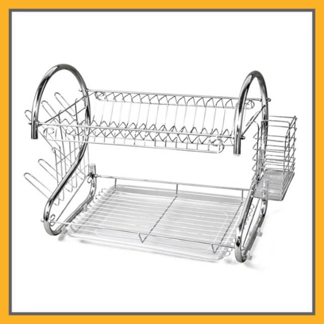 PERHATIAN !!!UNTUK MENGHINDARI KERUSAKAN BARANG PADA PROSES PENGIRIMAN SILAHKAN ATC BUBBLE WRAP, PRODUK INI TIDAK BERGARANSI.RAK PIRING STAINLESS 2 SUSUNDengan material stainless steel, 2-Tier Stainless Steel Dish Drainer ini mudah dibersihkan dan tidak mudahberkarat..Highlight:1. Rak piring 2 tingkat2. Dilengkapi tempat sendok, garpu, sumpit, pisau dan gelas3. Material stainless steel chrome yang tidak mudah berkarat4. Desain yang elegan cocok untuk peralatan dapur mewah dan menawan.2-Tier Stainless Steel Dish Drainer adalah rak piring 2 tingkat yang dapat Anda gunakan untuk meletakkan piring dan mangkuk yang telah dicuci. Selain itu, tersedia juga tempat untuk meletakkan alat makan seperti sendok dan garpu serta gelas. Dengan material stainless steel, 2-Tier Stainless Steel Dish Drainer ini mudah dibersihkan.Dengan model yang minimalis dan design yang menarik akan membuat dapur Anda tampak lebih cantikBisa ditaruh di atas meja atau kitchen set dekat wastafel dapur bersih Anda.Fungsi: Tempat Piring, Gelas, Sendok, Sumpit, dllEkstra nampan plastik untuk tetesan air, dapat dilepas dan dipasang kembali LRL2.Packing Box : 38 x 25 x 12 cm.Produk non garansiNo complainNo returMembeli = setuju.#rakpiring #rsksendok #rakpiring2susun #rakpiringtempatgelas #rakpiringmurah #rakpiringstainless #rakpiringtermurah #dishdrainer #alatmakan #sendokset #tempatsendok #tempatp