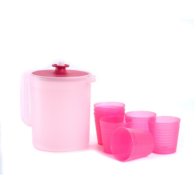 Teko Plastik dengan 5 GelasBahan PP5 Poly Propilene, Food GradeBahan yang digunakan aman untuk makananSize Teko : 31 x 15 x 18 cm, size gelas : 8 x 8 x 8 cmTutup dengan tombol dan LD sehingga tidak tumpahBahannya tebal dan varian banyak warna ... buruan dikoleksi untuk tekonya ....Terima k