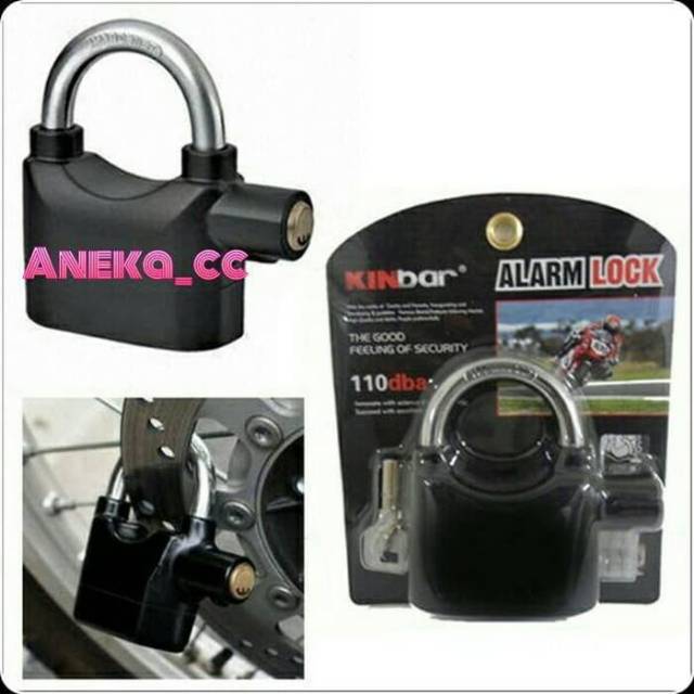 GEMBOK ALARM => GEMBOK + SENSOR + ALARM => ANTI MALINGSelain berfungsi seperti gembok biasa tapi juga ada sensor getarnya bila terkena GETARAN KERAS / DIPUKUL /DIBUKA PAKSA maka akan mengeluarkan bunyi ALARM dengan kekuatan setara dengan alarm mobil, jadi sangat cocok untuk keamanan motor, pintu pagar, gudang/toko dllSpesifikasi :- Hardened Zinc Alloy Body & Hard Stell Ring - Tinggi 10cm x Lebar 8 cm- Isi Paket : 1 Gembok Alarm , 3 Kunci & 1 set Baterei Cadangan.- 1 Set Batterei = 6 pcs type AG13/LR44/A76- Kekuatan Suara sistem alarm 110dba, setara dengan bunyi alarm mobil- Sistem Alarm akan aktif jika kena getaran atau pukulan,- Extra security, anak kunci kunci tidak dapat diduplikasi- Baterai terkunci dari dalam dan tidak bisa dibuka saat gembok terkunci- Umur Baterai bisa bertahan sekitar 6 bln - 2 tahun.- Gembok ini bisa dipakai sebagai gembok biasa tanpa alarm(Tinggal di balik lagi posisi tangkai/ring nya)Cara penggunaan:1. Buka tangkai/ring gembok dengan kuncinya.2. Cabut & Pasang tangkai/ring gembok dengan posisi diputar/dibalik3. Bila berbunyi beep.. tandanya alarm telah dinyalakan (Bila kurang jelas Silakan lihat gambar No.3)* Alarm otomatis akan berhenti setelah 35 detik dlm posisi tidak kena get