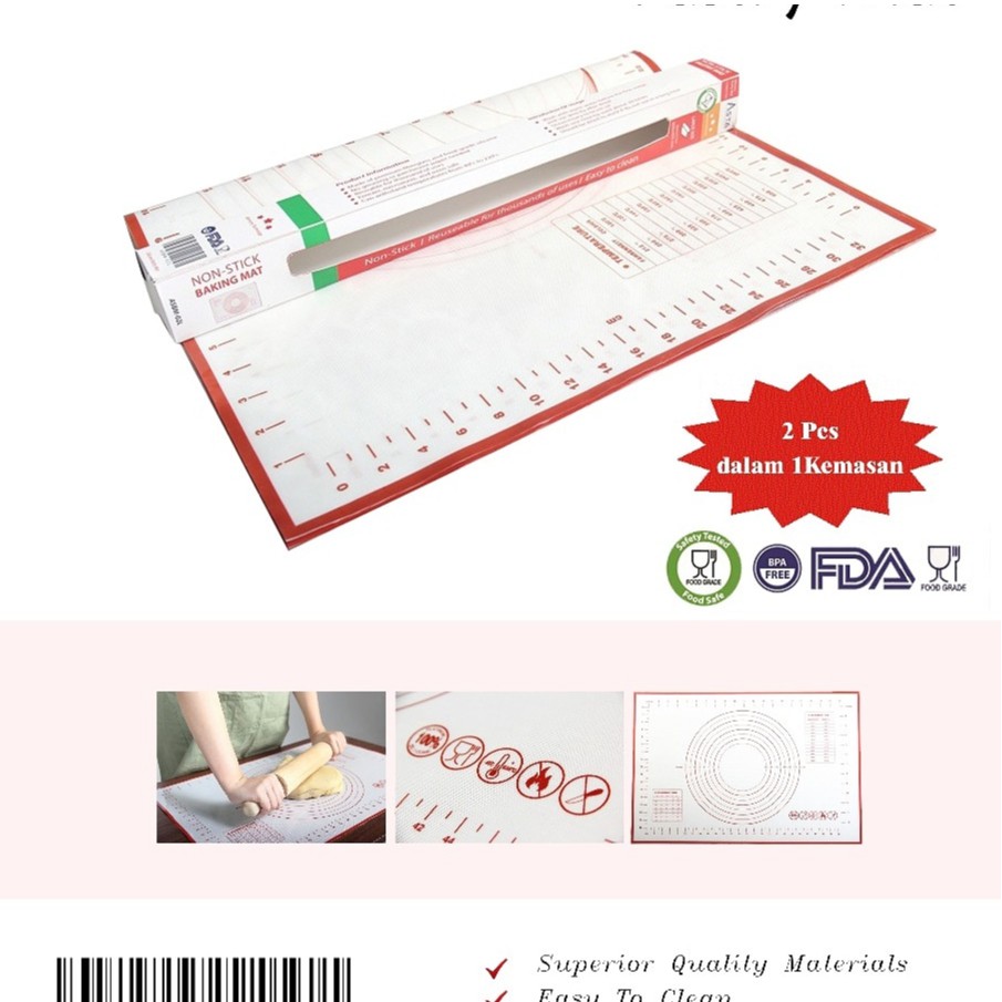 Pastry mat adalah produk yang dibuat dengan material kualitas tinggi bakteknologi Jerman. Pastry mat memiliki fungsi sebagai alas membuat adonan anti lengket.Spesifikasi pastry mat : - Dalam 1 box terdapat 2 pcs - Warna white dan red- Ukuran 60 cm x 40cm- Terbuat dari bahan Food Grade Silicone dan Non stick dan anti lengket yang aman untuk makanan- Untuk membuat adonan dan memanggang / baking anti le