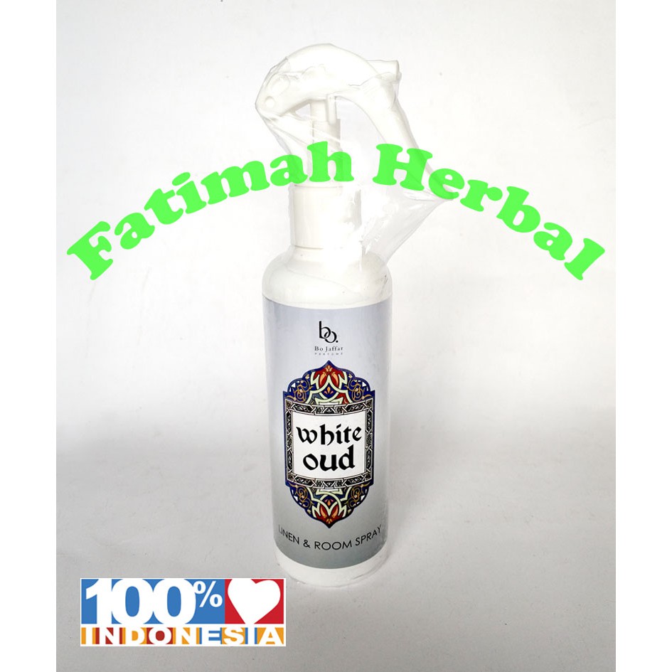 Pengharum Ruangan BO Jaffar White OudIsi : 250 ml- Produk BO jaffar (Salah satu pabrik penghasil minyak wangi/buhur bermutu tinggi dari Saudi Arabia)- Room Freshener- Aroma parfum gaharu yang lembut dan manis- Cocok dipakai pewangi ruangan (Ruang Tamu, Kamar Tidur, Majelis Ilmu, Musholla