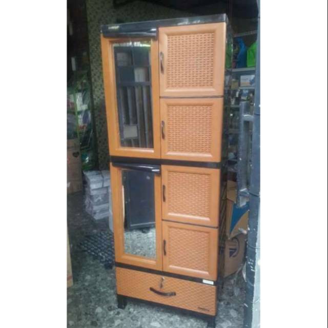 Lemari Plastik Rotan Napolly yang trendy Dan modern ini Adalah salah satu produk paling terbaru & terlaris keluaran dari Napolly Plastik. Lemari ini sangat unik karena dilengkapi dengan cermin. Produk ini Adalah salah satu produk unggulan & terobosan dari Napolly Plastik. Bahan lemari ini tahan terhadap air, rayap, Jamur & Kutu. *Harga diatas belum termasuk ong