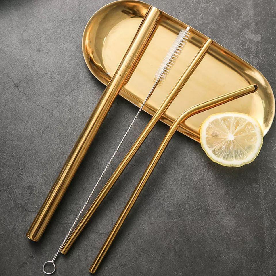 Termurah Perlengkapan di Kabupaten Gianyar Sedotan Stainless Steel / Sedotan Lurus & Melengkung + Sikat Sedotan - Rose Gold dari Tidak Ada Merek Kota Tangerang